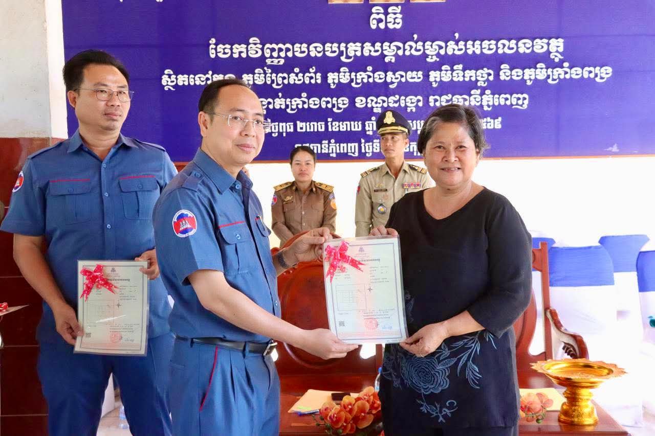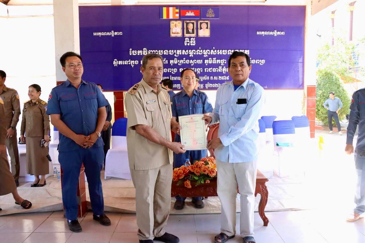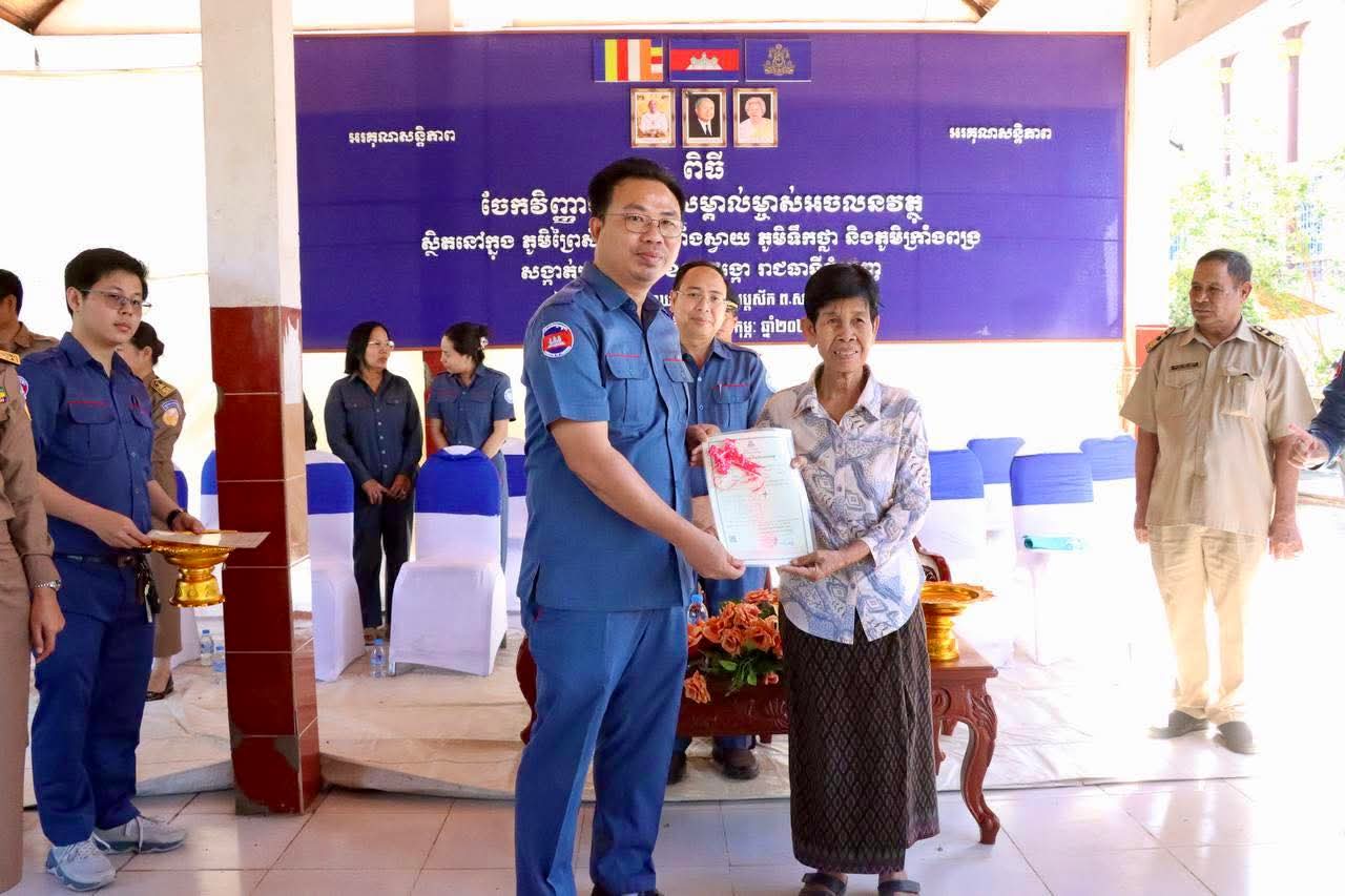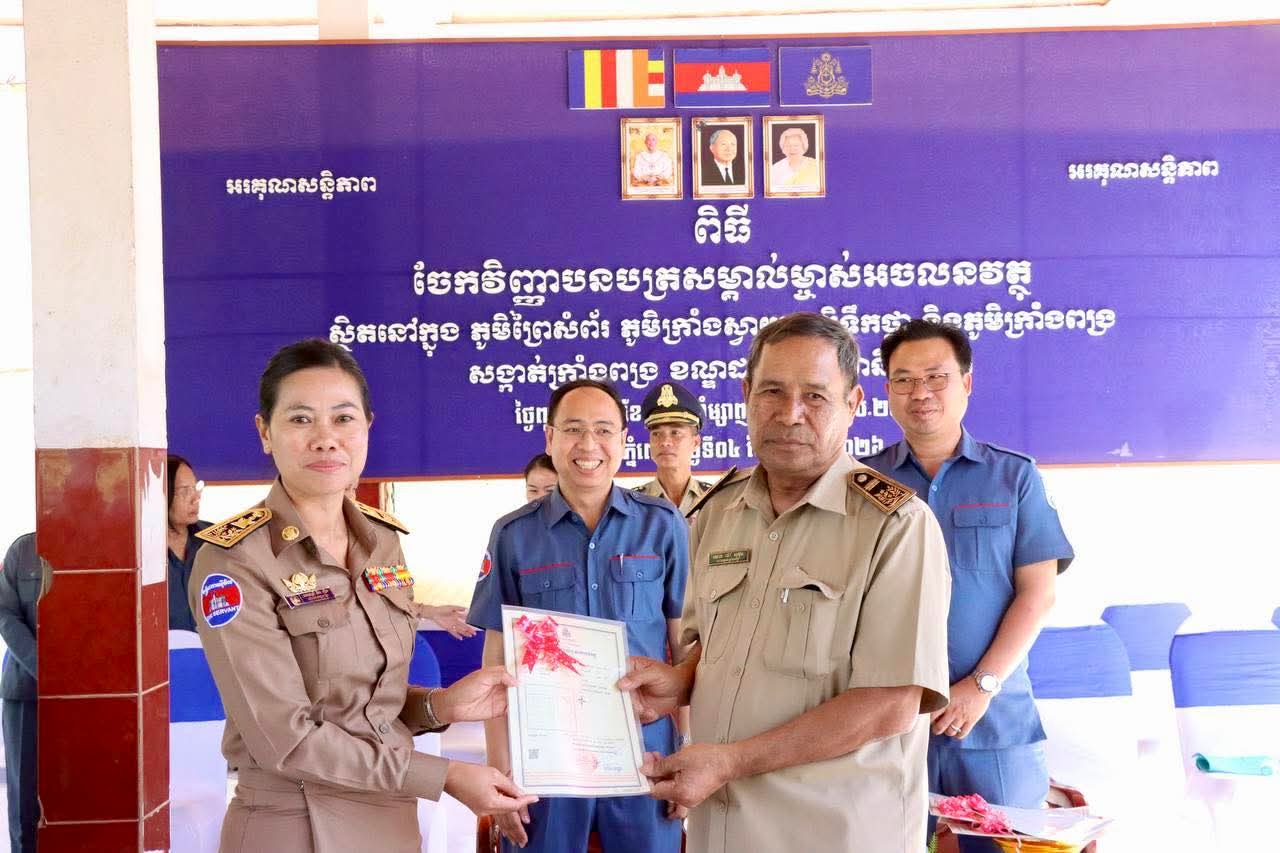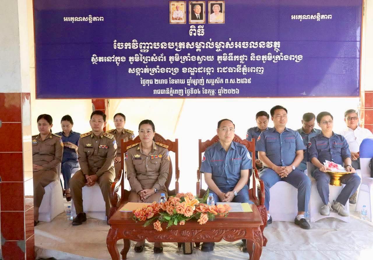 ចំពោះការចែកវិញ្ញាបនបត្រសំគាល់ម្ចាស់អចលនវត្ថុទីតាំងខាងលេី សូមម្ចាស់ក្បាលដីដែលមានប័ណ្ណសំគាល់សិទ្ធិកាន់កាប់ប្រេីប្រាស់ដីធ្លី ឬប័ណ្ណសំគាល់សិទ្ធិកាន់កាប់អចលនវត្ថុកន្លងមក មេត្តាយកប័ណ្ណទាំងនោះ មកប្រគល់ឱ្យមន្ត្រីរដ្ឋបាលសូរិយោដី នៅភូមិព្រៃសំព័រ ភូមិក្រាំងស្វាយ ភូមិទឹកថ្លា និងភូមិក្រាំងពង្រ សង្កាត់ក្រាំងពង្រ ខណ្ឌដង្កោ ចាប់ពីថ្ងៃទី៤ ខែកុម្ភៈ ឆ្នាំ២០២៦ ដល់ថ្ងៃទី១៣ ខែ កុម្ភៈ ឆ្នាំ២០២៦ ជាកំហិត៕
