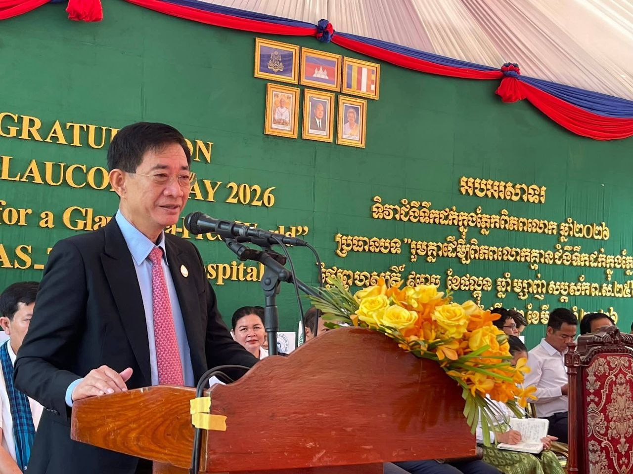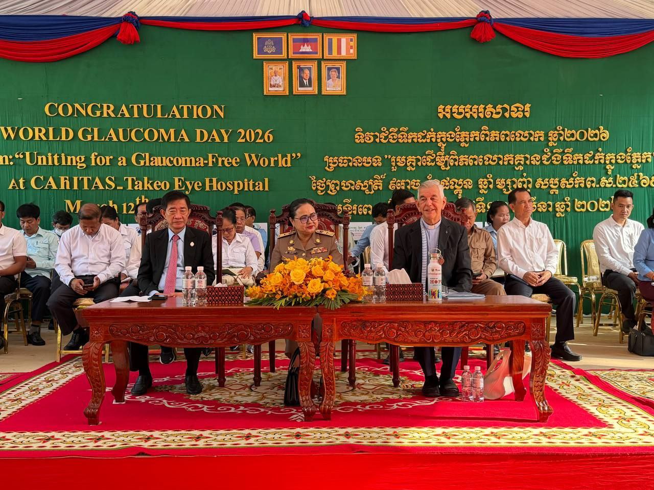 ខេត្តតាកែវ : នៅព្រឹកថ្ងៃ០៩រោច ខែផល្គុន ឆ្នាំម្សាញ់ សប្តស័ក ព.ស.២៥៦៩ ត្រូវនឹងថ្ងៃព្រហស្បតិ៍ ទី១២ ខែមីនា ឆ្នាំ២០២៦ នេះ មន្ទីរពេទ្យភ្នែកតាកែវ បាននិងកំពុងប្រារព្វ ទិវាជំងឺទឹកដក់ក្នុងភ្នែកពិភពលោកក្រោមប្រធានបទ រួមគ្នាដើម្បីពិភពលោកគ្មានជំងឺទឹកដក់ក្នុងភ្នែក ដោយមានការចូលរួមពី