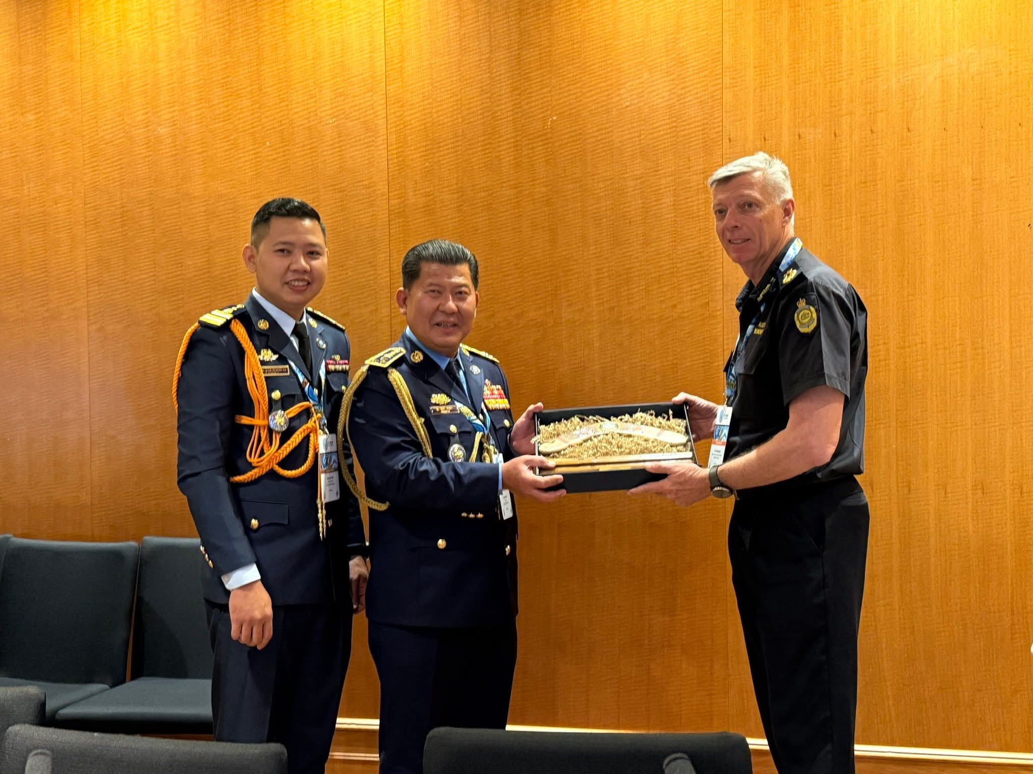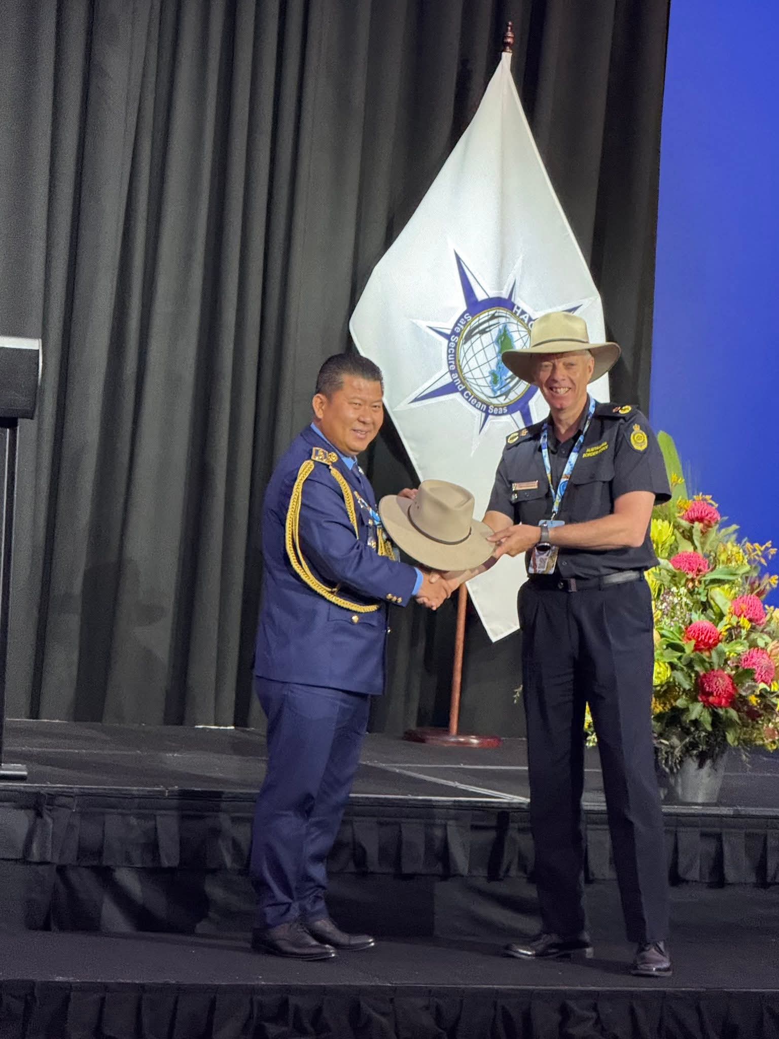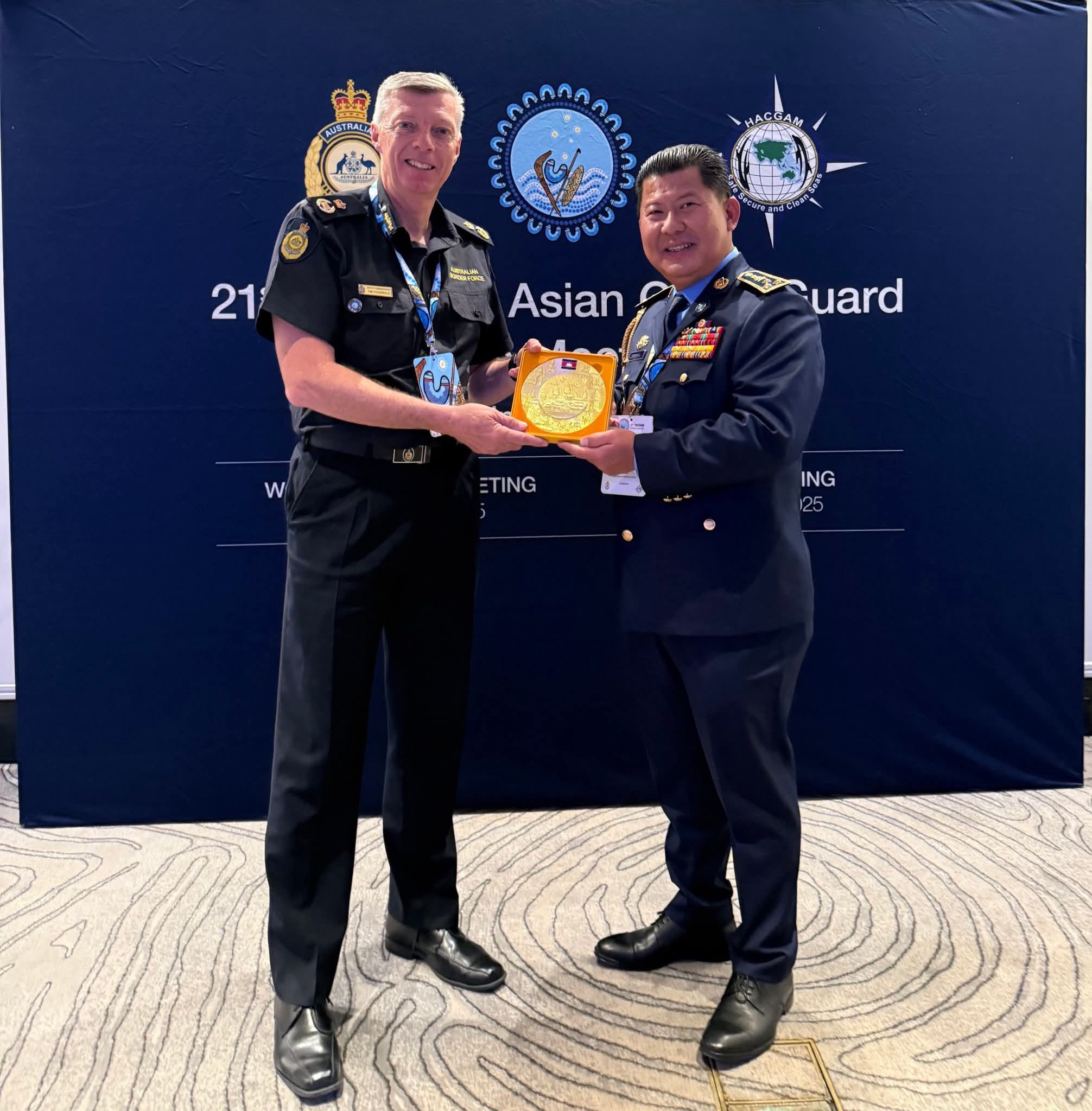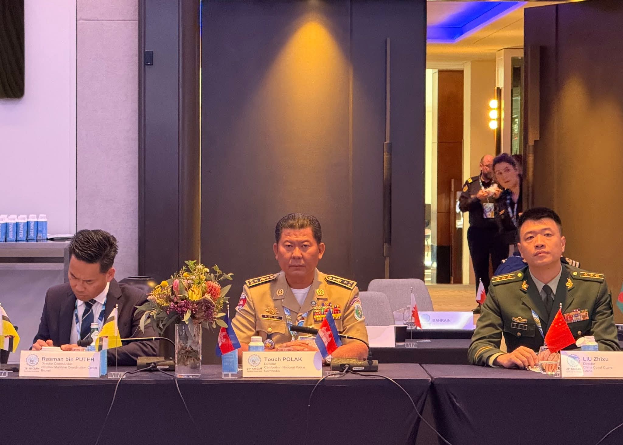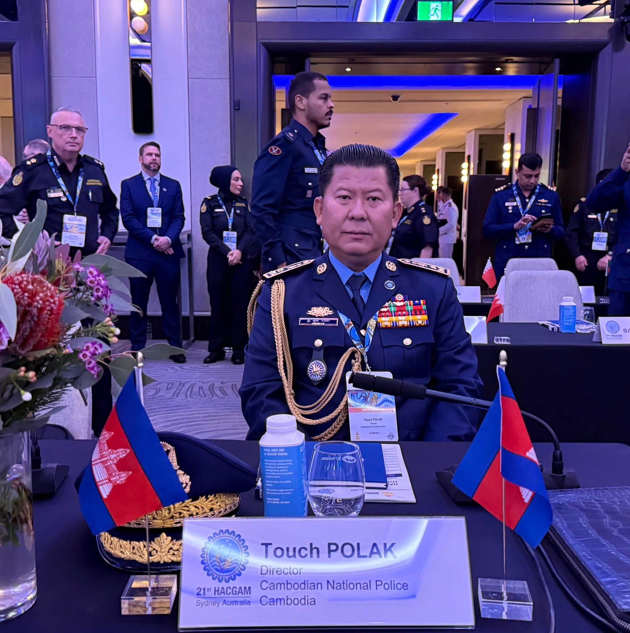 ប្រទេសអូស្ត្រាលី ៖ ដោយទទួលបានការអនុញ្ញាតិដ៏ខ្ពង់ខ្ពសពី ឯកឧត្តម នាយឧត្តមសេនីយ៍ ស ថេត អគ្គស្នងការនគរបាលជាតិ ចាប់ពីថ្ងៃទី១៤ ដល់ថ្ងៃទី១៦ ខែតុលា ឆ្នាំ២០២៥ លោកឧត្តមសេនីយ៍ឯក ទូច ពលៈ ប្រធាននាយកដ្ឋាននគរបាលការពារព្រំដែនទឹក អគ្គលេខាធិការរង នៃគណ:កម្មាធិការជាតិសន្តិសុខលម្ហសមុទ្រ និងជាមេបញ្ជាការរងអចិន្ត្រៃយ៍ នៃគណៈបញ្ជាការនគរបាលជាតិប្រចាំទិសភូមិភាគទី៣ អញ្ជើញចូលរួមក្នុងកិច្ចប្រជុំស្តីពីនាយកទីភ្នាក់ងារឆ្មាំសមុទ្រអាស៊ីលើកទី២១ (HACGAM) នៅប្រទេសអូស្រ្តាលី ។