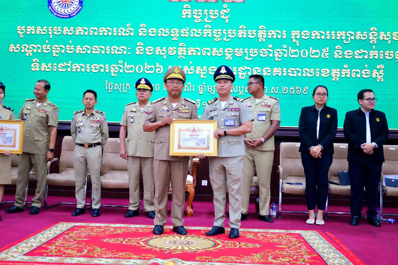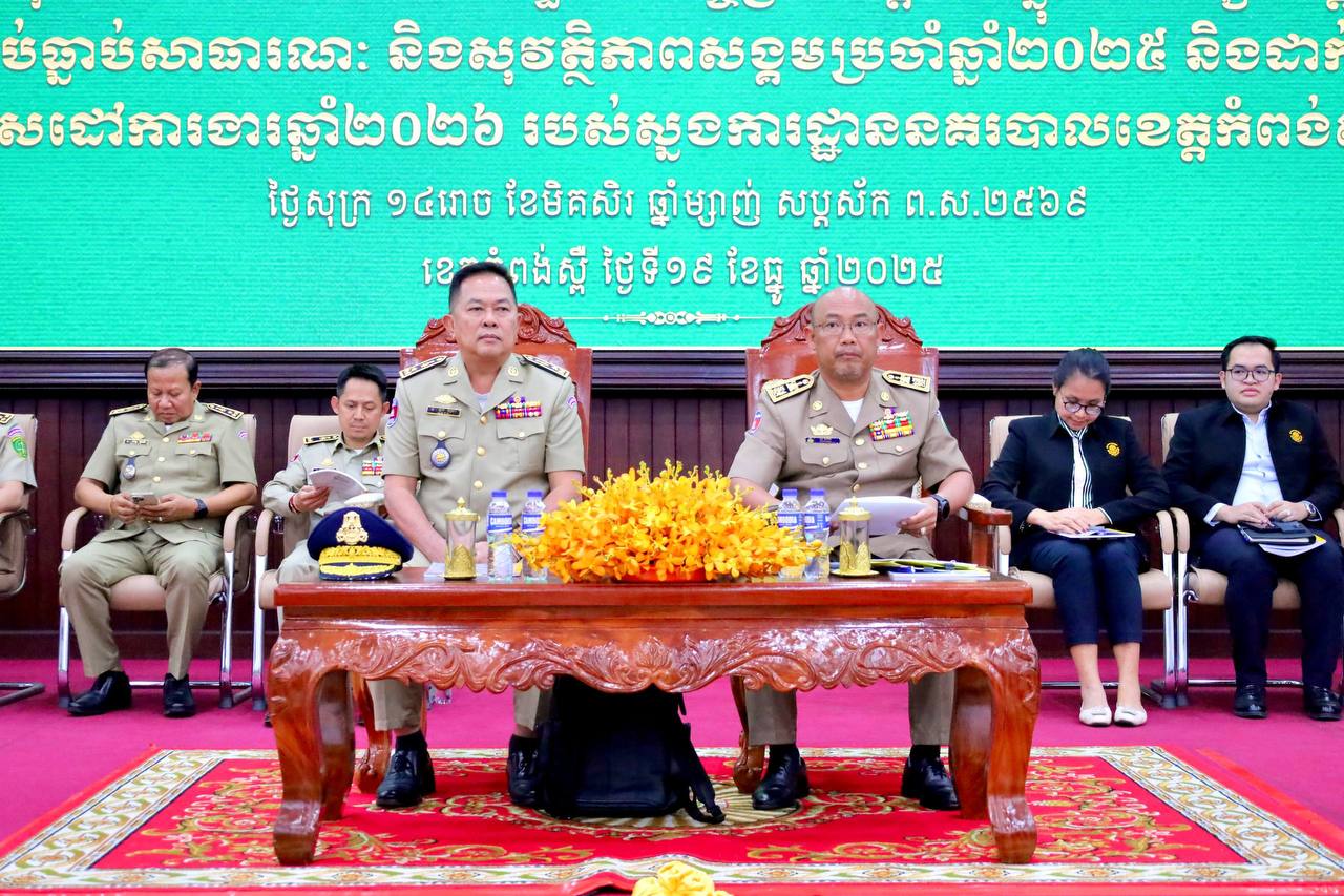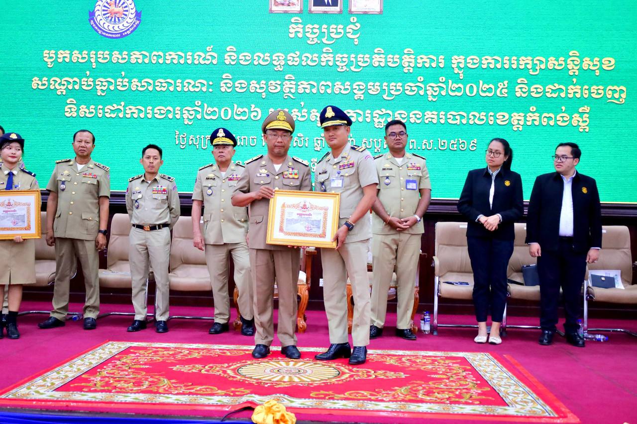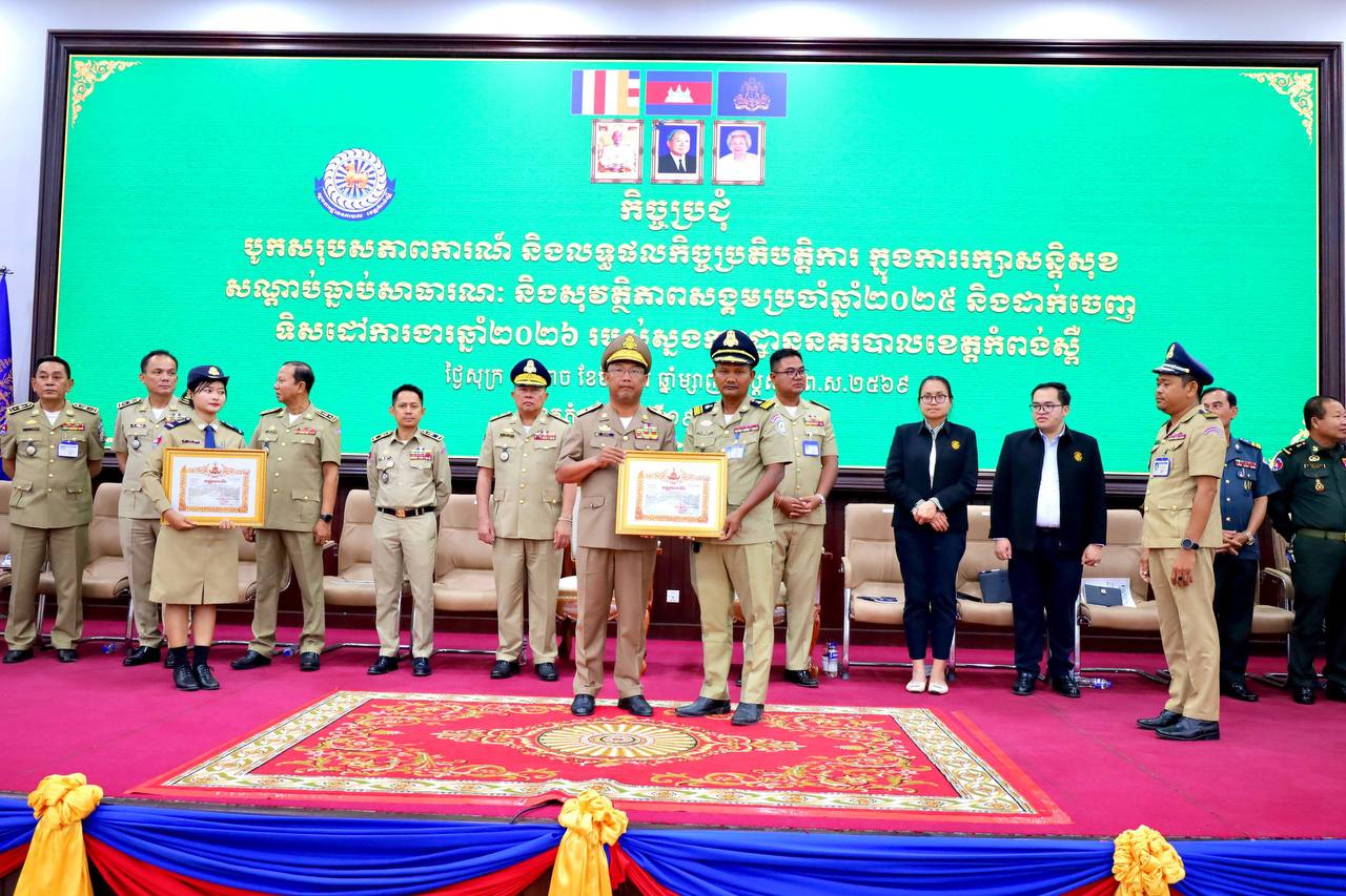 @:កំពុងស្ពឺ@: លោកបណ្ឌិត តូច ប៉ូលីវ៉ា អភិបាលរង នៃគណៈអភិបាលខេត្ត កំពង់ស្ពឺ តំណាងឯកឧត្តមបណ្ឌិត ជាម ច័ន្ទសោភ័ណ អភិបាល នៃគណៈអភិបាលខេត្ត និងឯកឧត្តមឧត្តមសេនីយ៍ឯក មួង សុធា អគ្គស្នងការរងនគរបាលជាតិ តំណាងឯកឧត្តមឧត្តមសេនីយ៍ ស ថេត អគ្គស្នងការនគរបាលជាតិ បានអញ្ជើញជាសហអធិបតីបិទកិច្ចប្រជុំបូកសរុបសភាពការណ៍ និងលទ្ធផលកិច្ចប្រតិប ត្តិការ ក្នុងការរក្សាសន្តិសុ និងសណ្តា ប់ ធ្នាប់សង្គមប្រចាំឆ្នាំ២០២៥ និងដាក់ចេញទិសដៅការងា រឆ្នាំ២០២៦ របស់ស្នងការដ្ឋាននគរបាលខេត្ដកំពង់ស្ពឺ ដែលពិធីនេះប្រារព្ធធ្វើឡើងនៅសាលប្រជុំ (វុី សំណាង) នៃអាគាររដ្ឋបាលសា លាខេត្តកំពង់ស្ពឺ ។