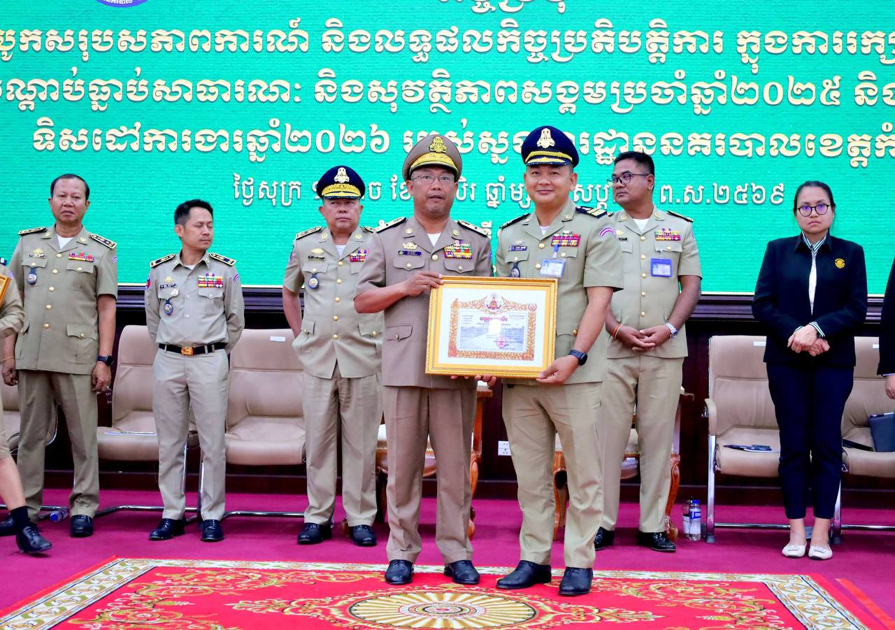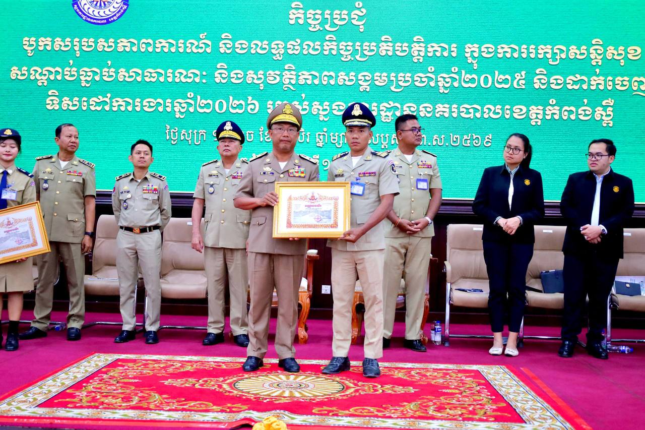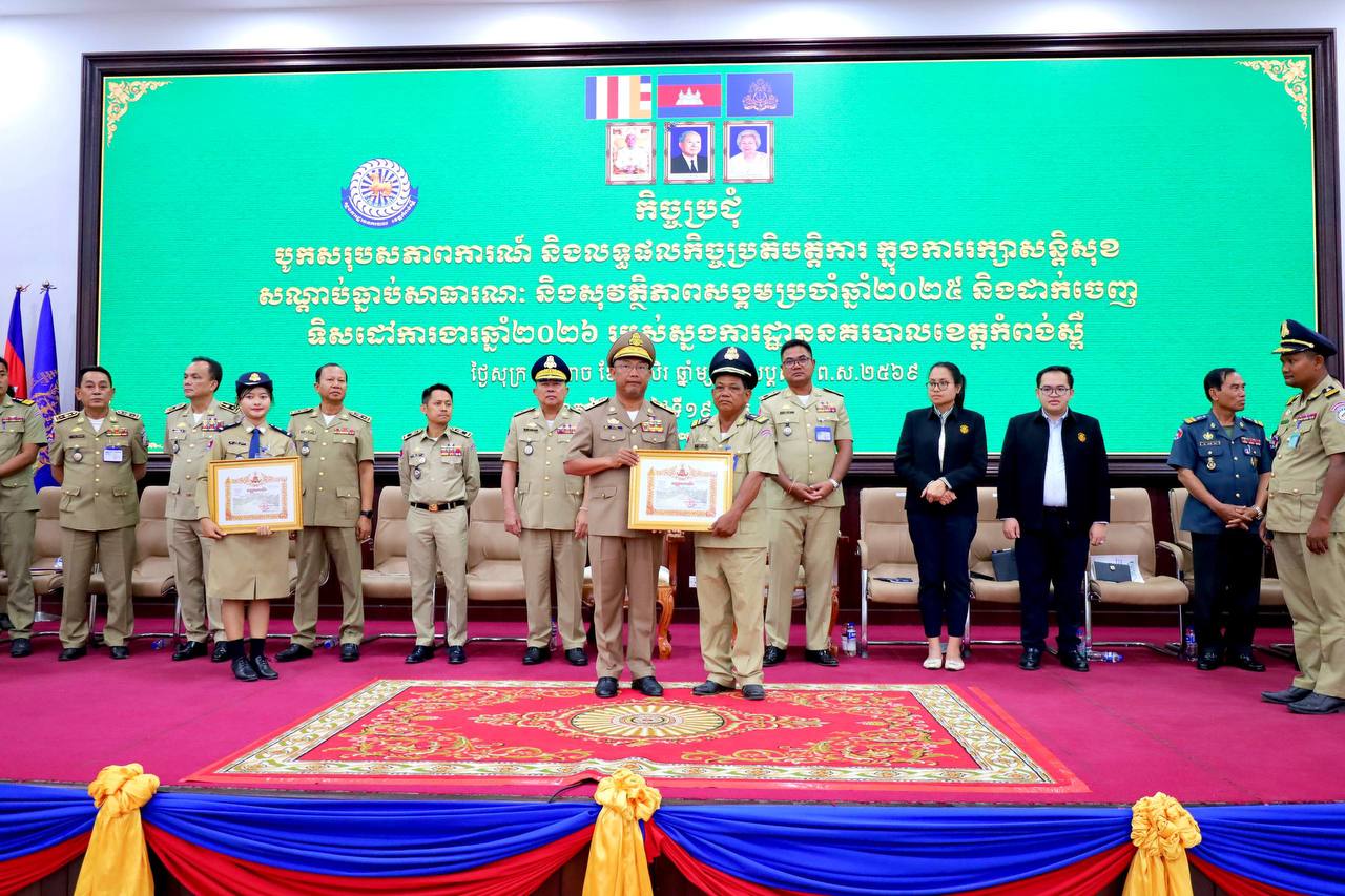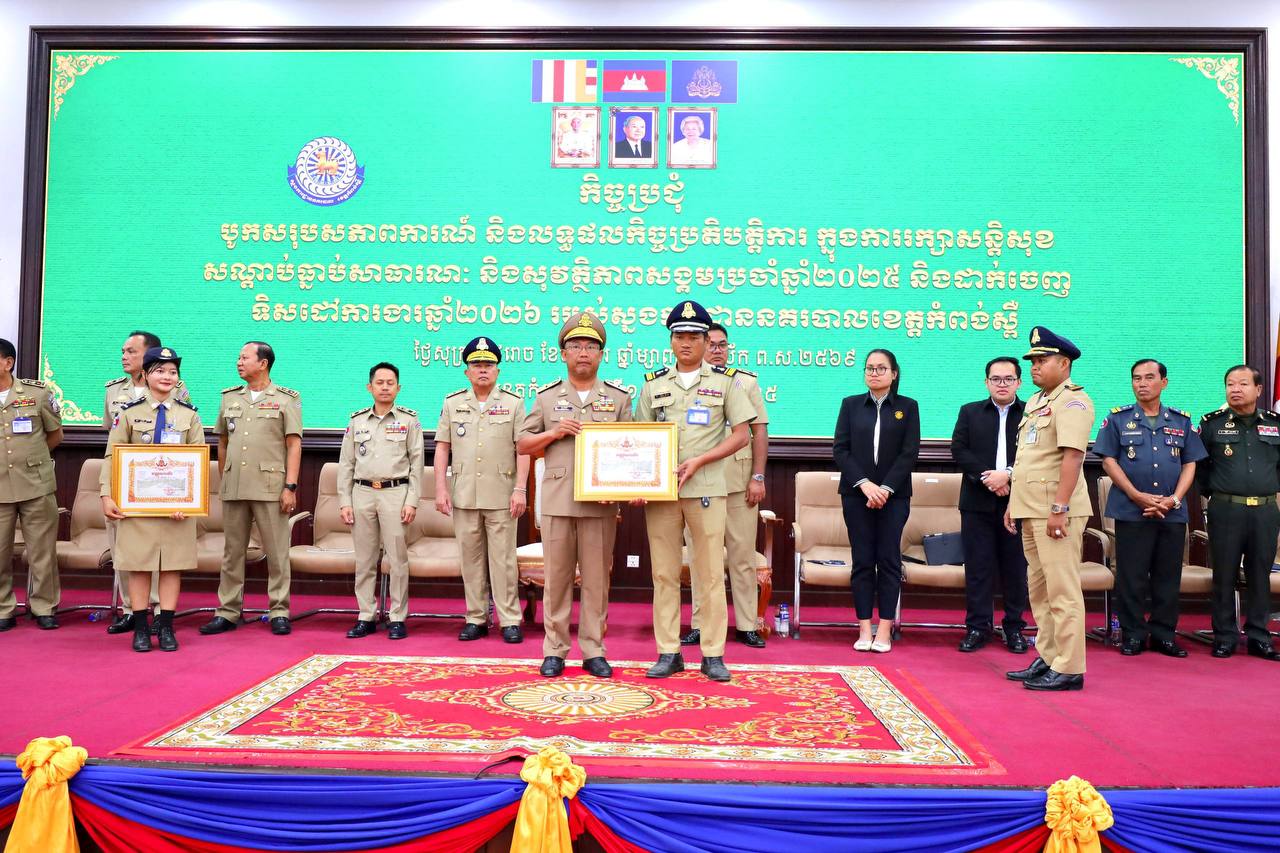 @:កំពុងស្ពឺ@: លោកបណ្ឌិត តូច ប៉ូលីវ៉ា អភិបាលរង នៃគណៈអភិបាលខេត្ត កំពង់ស្ពឺ តំណាងឯកឧត្តមបណ្ឌិត ជាម ច័ន្ទសោភ័ណ អភិបាល នៃគណៈអភិបាលខេត្ត និងឯកឧត្តមឧត្តមសេនីយ៍ឯក មួង សុធា អគ្គស្នងការរងនគរបាលជាតិ តំណាងឯកឧត្តមឧត្តមសេនីយ៍ ស ថេត អគ្គស្នងការនគរបាលជាតិ បានអញ្ជើញជាសហអធិបតីបិទកិច្ចប្រជុំបូកសរុបសភាពការណ៍ និងលទ្ធផលកិច្ចប្រតិប ត្តិការ ក្នុងការរក្សាសន្តិសុ និងសណ្តា ប់ ធ្នាប់សង្គមប្រចាំឆ្នាំ២០២៥ និងដាក់ចេញទិសដៅការងា រឆ្នាំ២០២៦ របស់ស្នងការដ្ឋាននគរបាលខេត្ដកំពង់ស្ពឺ ដែលពិធីនេះប្រារព្ធធ្វើឡើងនៅសាលប្រជុំ (វុី សំណាង) នៃអាគាររដ្ឋបាលសា លាខេត្តកំពង់ស្ពឺ ។