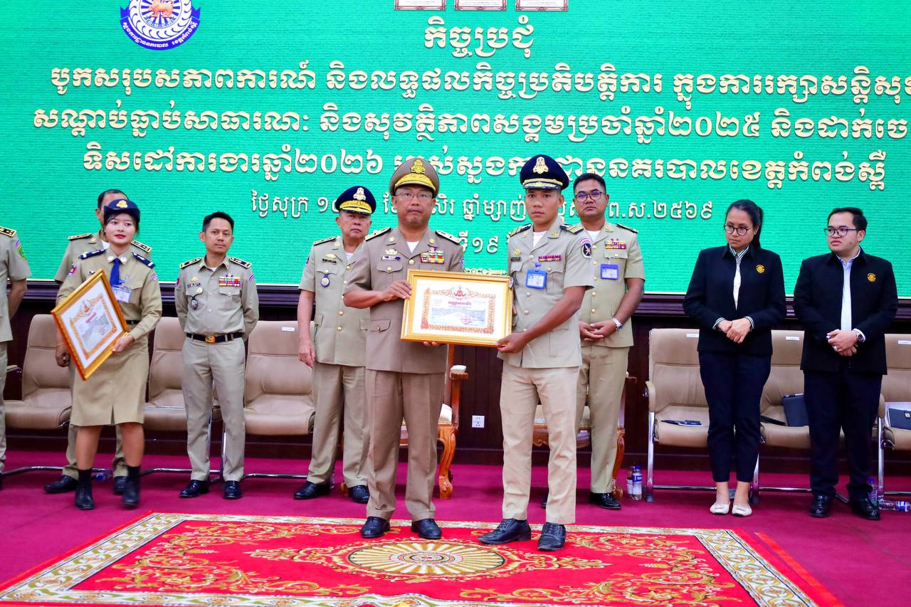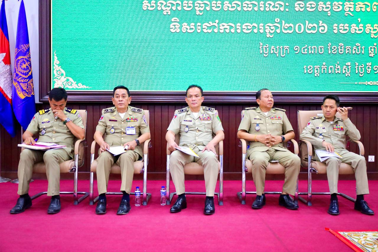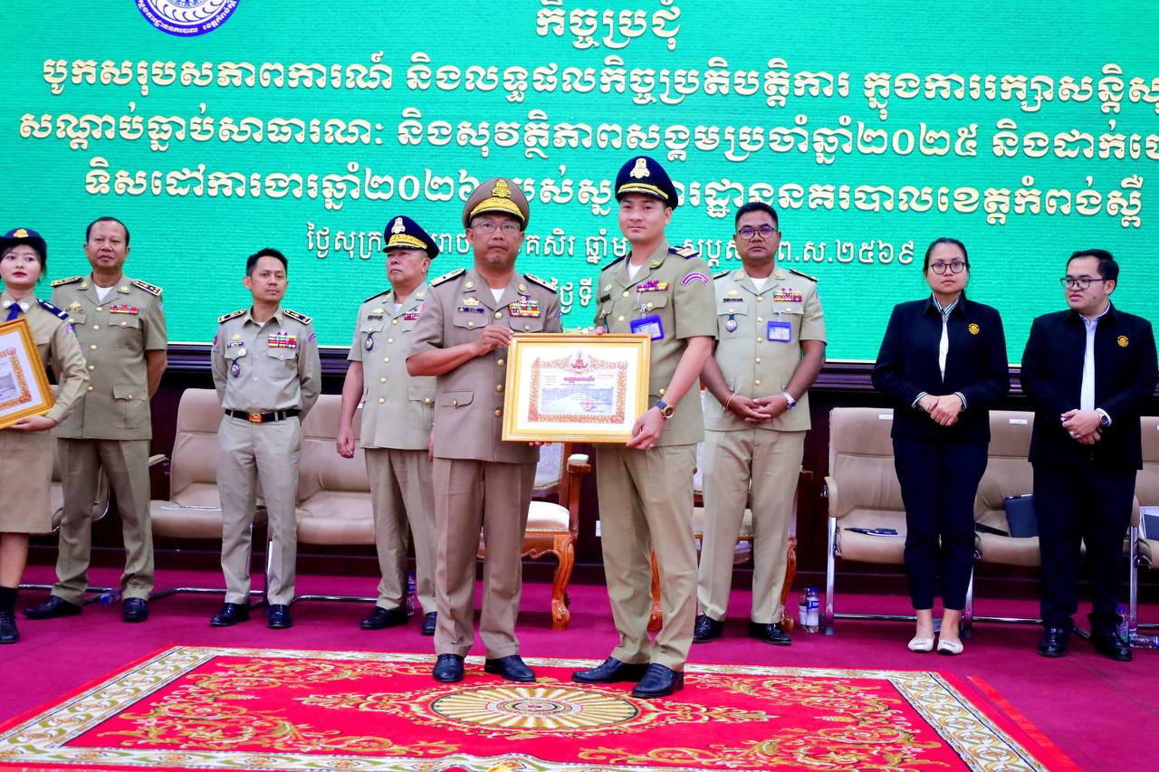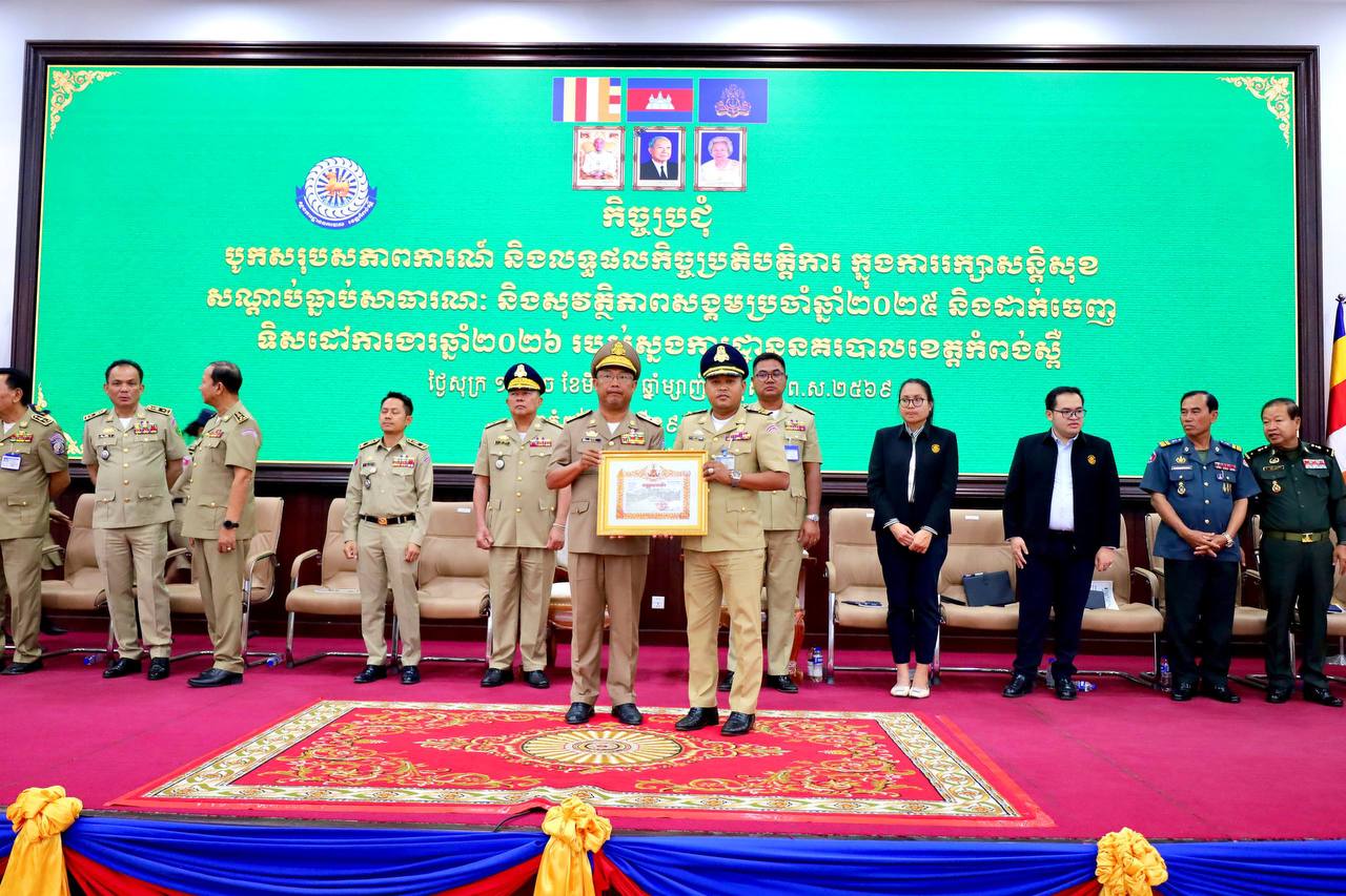 @:កំពុងស្ពឺ@: លោកបណ្ឌិត តូច ប៉ូលីវ៉ា អភិបាលរង នៃគណៈអភិបាលខេត្ត កំពង់ស្ពឺ តំណាងឯកឧត្តមបណ្ឌិត ជាម ច័ន្ទសោភ័ណ អភិបាល នៃគណៈអភិបាលខេត្ត និងឯកឧត្តមឧត្តមសេនីយ៍ឯក មួង សុធា អគ្គស្នងការរងនគរបាលជាតិ តំណាងឯកឧត្តមឧត្តមសេនីយ៍ ស ថេត អគ្គស្នងការនគរបាលជាតិ បានអញ្ជើញជាសហអធិបតីបិទកិច្ចប្រជុំបូកសរុបសភាពការណ៍ និងលទ្ធផលកិច្ចប្រតិប ត្តិការ ក្នុងការរក្សាសន្តិសុ និងសណ្តា ប់ ធ្នាប់សង្គមប្រចាំឆ្នាំ២០២៥ និងដាក់ចេញទិសដៅការងា រឆ្នាំ២០២៦ របស់ស្នងការដ្ឋាននគរបាលខេត្ដកំពង់ស្ពឺ ដែលពិធីនេះប្រារព្ធធ្វើឡើងនៅសាលប្រជុំ (វុី សំណាង) នៃអាគាររដ្ឋបាលសា លាខេត្តកំពង់ស្ពឺ ។