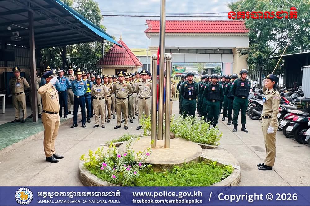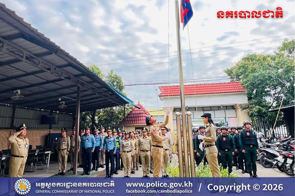 ភ្នំពេញ៖ នាព្រឹកថ្ងៃចន្ទ ២រោច ខែបុស្ស ឆ្នាំម្សាញ់ សប្តស័ក ព.ស.២៥៦៩ ត្រូវនឹងថ្ងៃទី០៥ ខែមករា ឆ្នាំ២០២៦ លោកវរសេនីយ៍ឯក ជឹម ស៊ីថា អធិការនគរបាលខណ្ឌដង្កោ បានដឹកនាំកម្លាំងប្រជុំជួរគោរពទង់ជាតិ នៅអធិការដ្ឋាននគរបាលខណ្ឌដង្កោ ដោយមានការចូលរួម ពីលោក លោកស្រី អធិការរង លោកនាយផ្នែក នាយប៉ុស្ដិ៍ នាយរងផ្នែក នាយរងប៉ុស្ដិ៍ និងមន្ត្រីក្រោមឱវាទទាំងអស់។