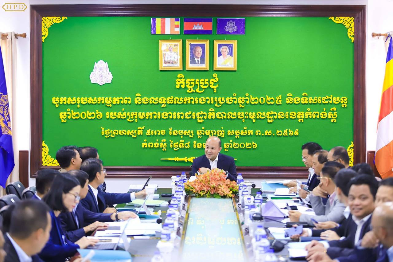 @:កំពុងស្ពឺ@:លោកបណ្ឌិត តូច ប៉ូលីវ៉ា អភិបាលរង នៃគណៈអភិបាលខេត្តកំពង់ស្ពឺ បានអញ្ជើញចូលរួមក្នុងកិច្ចប្រជុំបូកសរុបលទ្ធផលការងារប្រចាំឆ្នាំ២០២៥ និងលើកទិសដៅអនុវត្តបន្ត ឆ្នាំ២០២៦ របស់ក្រុមការងាររាជរដ្ឋាភិបាលចុះមូលដ្ឋានខេត្តកំពង់ស្ពឺ ក្រោមអធិបតីភាព ឯកឧត្តម ហ៊ុន ម៉ានី ឧបនាយករដ្ឋមន្រ្តី រដ្ឋមន្រ្តីក្រសួងមុខងារសាធារណៈ និងជាប្រធានក្រុមការងាររាជរដ្ឋាភិបាលចុះមូលដ្ឋានខេត្តកំពង់ស្ពឺ ។